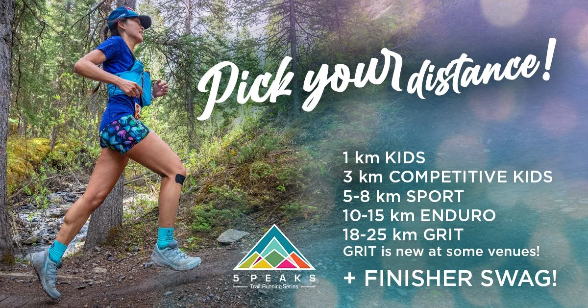 5 Peaks Adventures is a trail running community throughout North America. We host trail running events for people of all ages, abilities, and ambitions - from toddlers to elders and everyone in between. Our trail running series events are organized by geographical regions with 5 series events per region. These 5 Peaks Trail Running Series events offer a variety of distances for kids and adults alike between 1 km and 21 km.