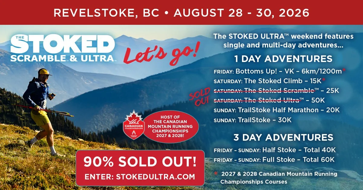 If you’d like to preview the courses for the 2027 and 2028 Canadian Mountain Running Championship courses, we invite you to join us this year at the Stoked Ultra weekend August 28-30, 2026.
